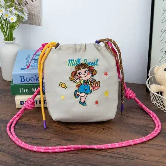 밀크 스위트의 귀여운 자수가 놓인 캐주얼한 숄더백. - 디자인: 밀크 스위트 자수 디자인 - 색상: 베이지 - 스트랩: 컬러풀한 드로우 스트링 - 사이즈: 소형 - 스타일: 캐주얼 방문해 주셔서 감사합니다.