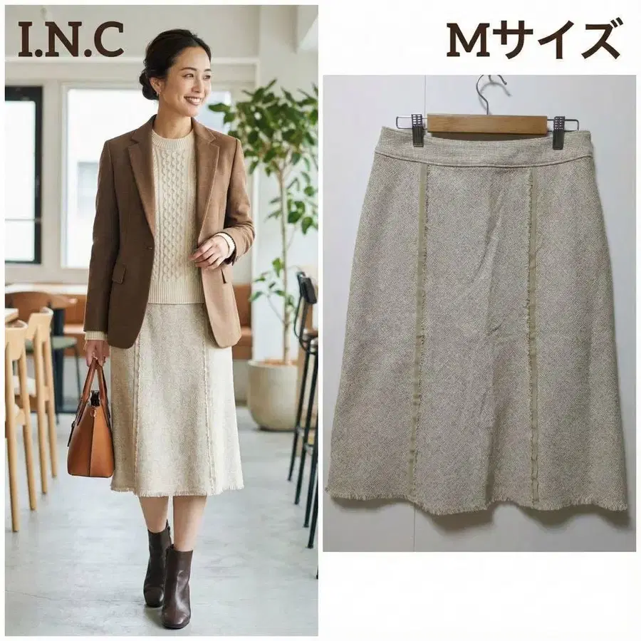 I.N.C 트위드 스커트 프린지 코튼 혼방 베이지 M 사이즈 고급