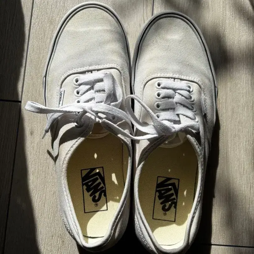 황변이 있습니다. 밑창은 깨끗합니다. - 브랜드: Vans - 색상: 화이트 - 스타일: 스니커즈 - 밑창 타입: 러버 솔 26cm US Men 8.0 US Women 9.5 UK 7.0 EUR 40.5