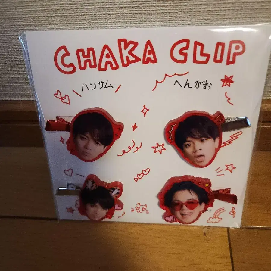 4개의 아이돌 클립이 세트로 구성된 디자인. - 상품명: CHAKA CLIP.HBC - 디자인: 클립 4개 포함 - 테마: 아이돌 - 색상: 빨간색과 화이트 - 소재: 플라스틱 FC 한정판 방문해 주셔서 감사합니다.
