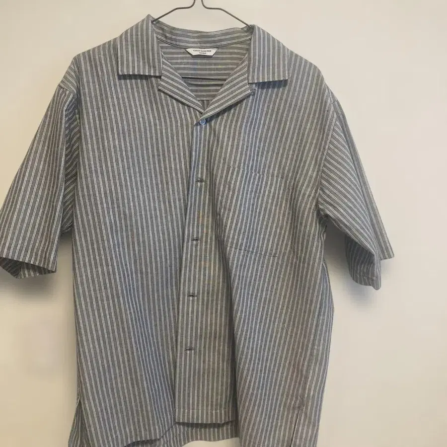 스트라이프 반팔 셔츠 오픈 카라