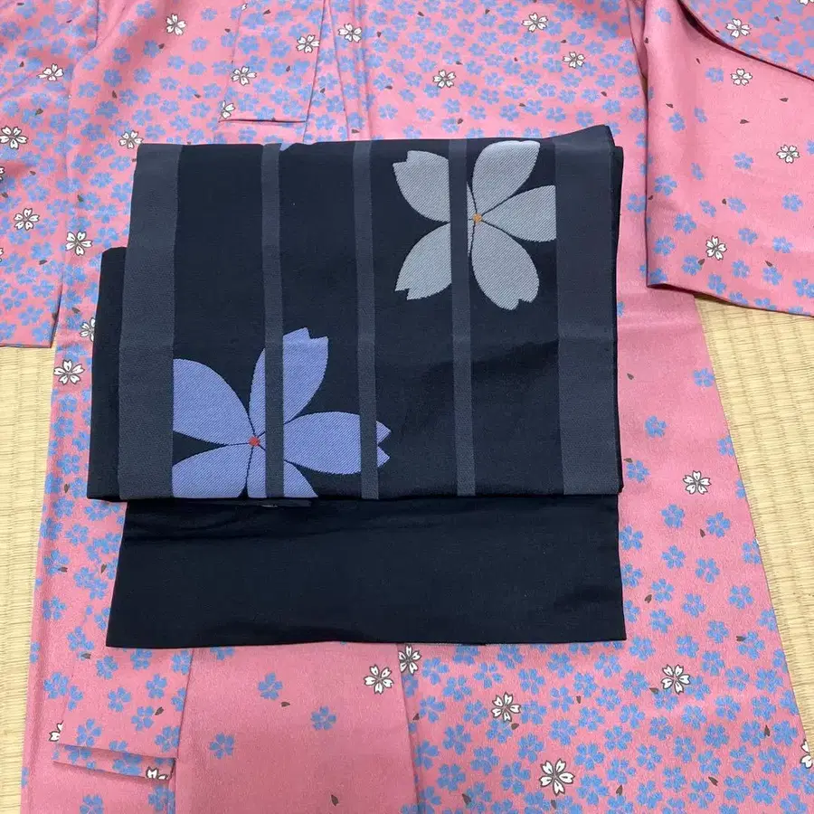 꽃무늬 유카타 오비 세트 M 사이즈