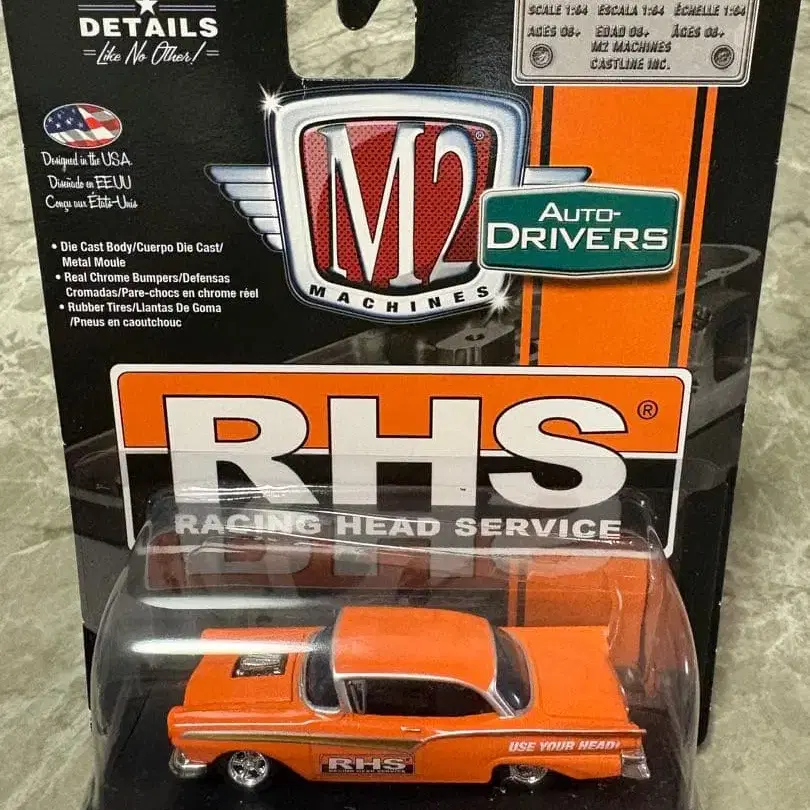 1957 포드 페어레인 500의 상세한 미니카, 28개의 부품으로 구성. - 브랜드: M2 Machines - 모델명: RHS Racing Head Service - 차종: 1957 포드 페어레인 500 - 색상: 오렌지 - 부품 수: 28 방문해 주셔서 감사합니다.