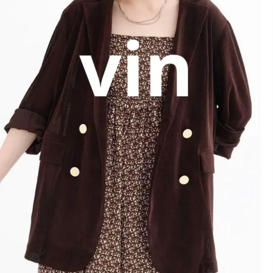 은은한 비침이 있는 메쉬 벨로아 소재로, 여유로운 더블 버튼 실루엣입니다.