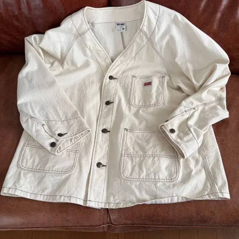 아이보리 색상의 BIG MAC 브랜드 노카라 커버올입니다. 버튼이 달려 있습니다. 1~2회 착용한 새상품급 상태입니다. 사이즈는 M이지만, 일본 사이즈 XL에 해당합니다. - 브랜드: BIG MAC - 사이즈: M - 색상: 아이보리 - 디자인: 버튼 달린 자켓 - 포켓: 앞면 포켓 있음 방문해 주셔서 감사합니다. 어깨 너비/가슴 너비/소매 길이/기장 어깨 너비 - 60cm 가슴 너비 - 60cm 소매 길이 - 50cm 기장 - 70cm 색상 - 화이트 계열