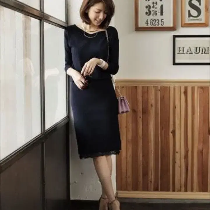 드레 스테리아 비쥬 카라 니트 원피스 네이비 38