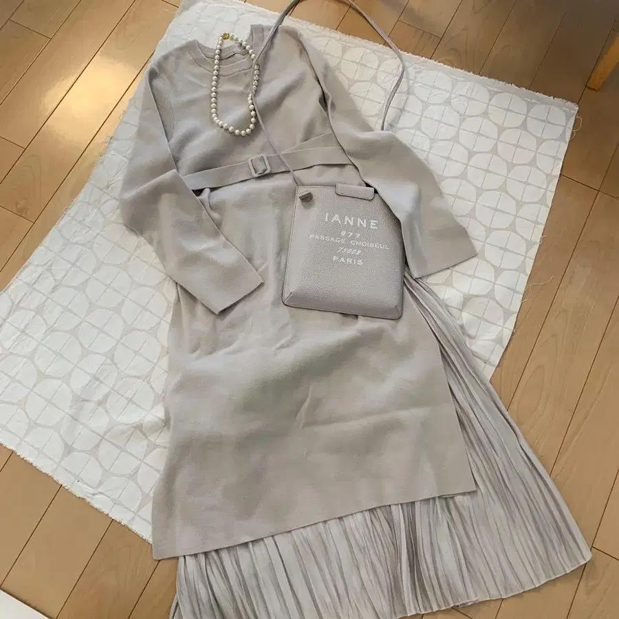 antiqua 니트 플리츠 스커트 도킹 롱 원피스 루즈핏