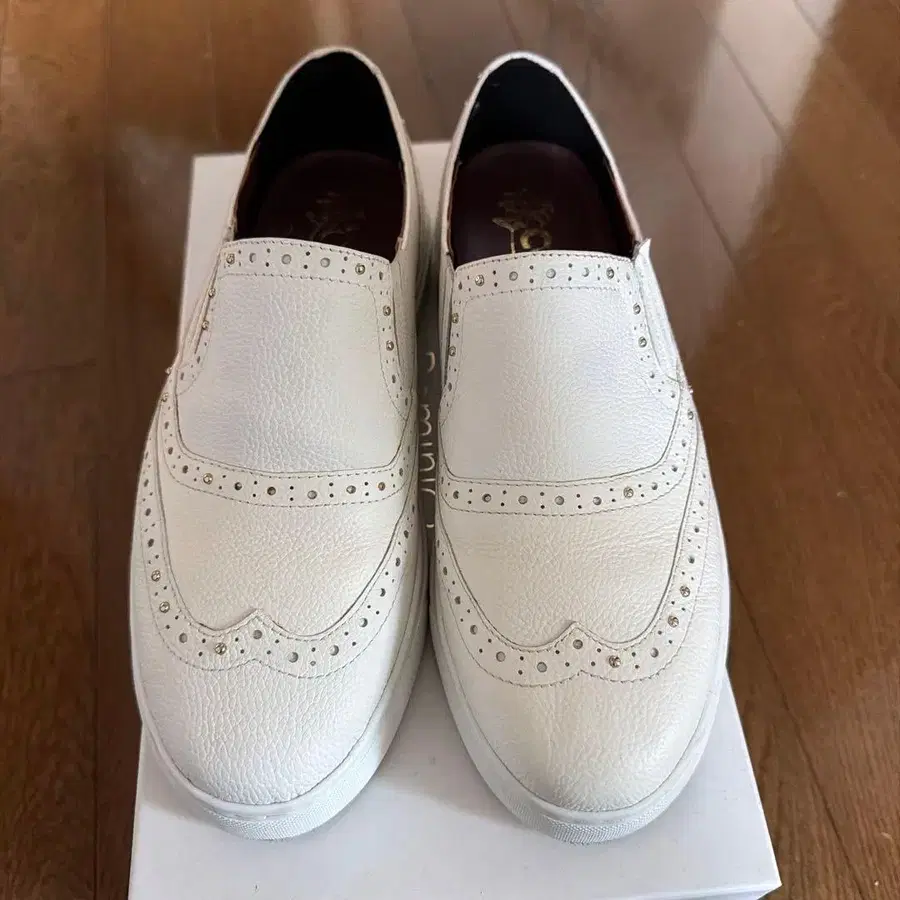 스터드가 달린 화이트 로퍼, 쿠션성 있는 인솔로 쾌적한 착용감. - 브랜드: coca - 색상: 화이트 - 스타일: 로퍼 - 디자인: 스터드 장식 - 인솔: 쿠션성 있음 이곳에서 구매했지만 신을 기회가 없어 판매합니다. 방문해 주셔서 감사합니다.
