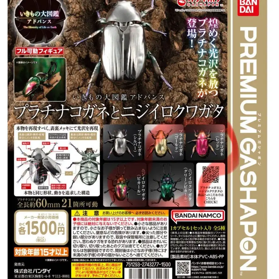 생물대도감 어드밴스 플라티나 풍뎅이와 무지개 사슴벌레 (4종 세트/캡슐판) 플라티나 풍뎅이 (골드) 플라티나 풍뎅이 (레드) 무지개 사슴벌레 (피카르) 무지개 사슴벌레 (그린 피카르) 미니북 x 4장 캡슐은 없습니다. 부품이 섬세하고 다리는 떨어지기 쉬우므로 개봉 후 조립해 주세요. 초기 불량이 있을 경우 직접 제조사에 문의해 주세요. 방수 대책으로 에어캡을 사용하여 네코포스용 종이상자로 발송합니다. ⭕️ 즉시 구매 가능 ❌ 가격 인하 불가 ❌ 낱개 판매 불가 타이틀 - 생물대도감 카테고리 - 가챠가챠