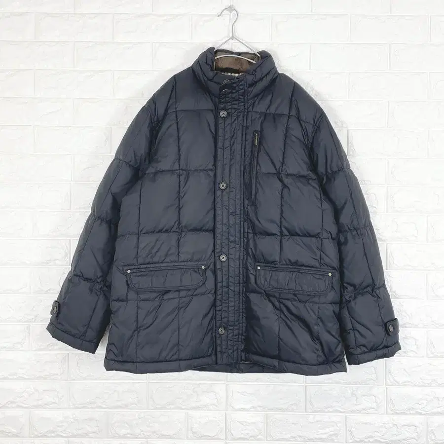 블랙 색상의 퀼팅 다운 자켓, 스탠드 카라와 다기능 포켓 부착.