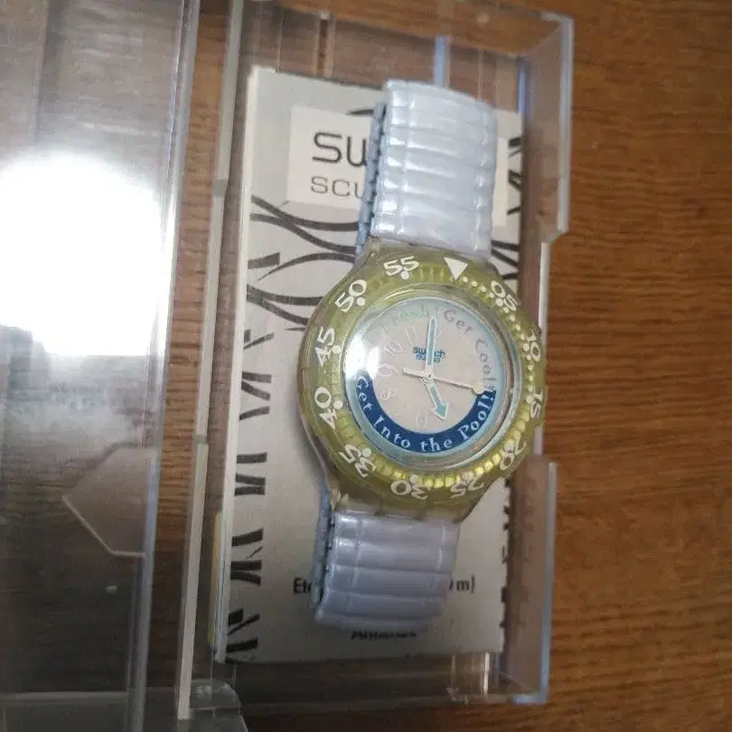 자동 번역되었어요. 원문보기화이트와 골드 스와치, 200m 방수 쿼츠 손목시계.
