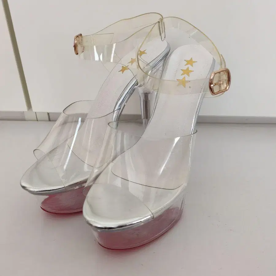썸머 스타일 어워드 규정 힐 사이즈는 24.5cm 연습용으로 어떠신가요. - 색상: 클리어 - 힐 높이: 하이힐 - 디자인: 오픈토 - 스트랩 타입: 앵클 스트랩 - 밑창 색상: 핑크 방문해 주셔서 감사합니다.