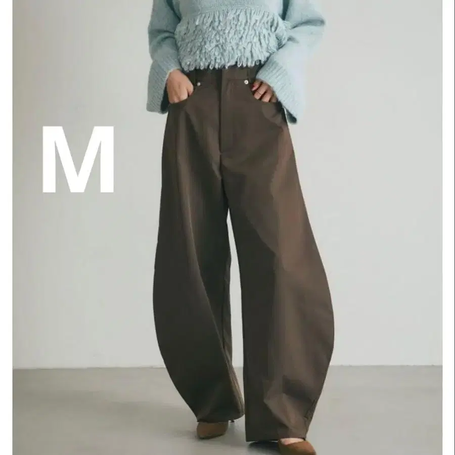 외부로 완만하게 휘어진 코쿤 실루엣이 특징인 팬츠.