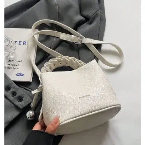 뜨개질 핸들과 벨이 달린 화이트 숄더백. - 색상: 화이트 - 디자인: 뜨개질 핸들 - 특징: 벨 포함 - 스타일: 숄더백 방문해 주셔서 감사합니다.