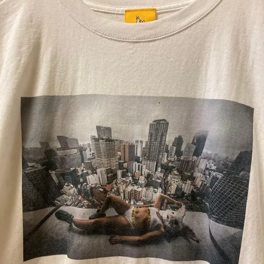 약간 사용감 있음 프린트, 일부 벗겨짐 있음. 구멍은 없습니다. 어깨 너비 48 가슴 너비 50 기장 63 소매 길이 18