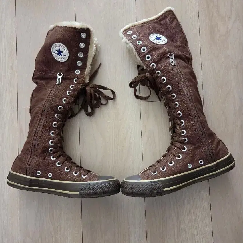 컨버스 브라운 퍼 달린 롱 부츠 23cm