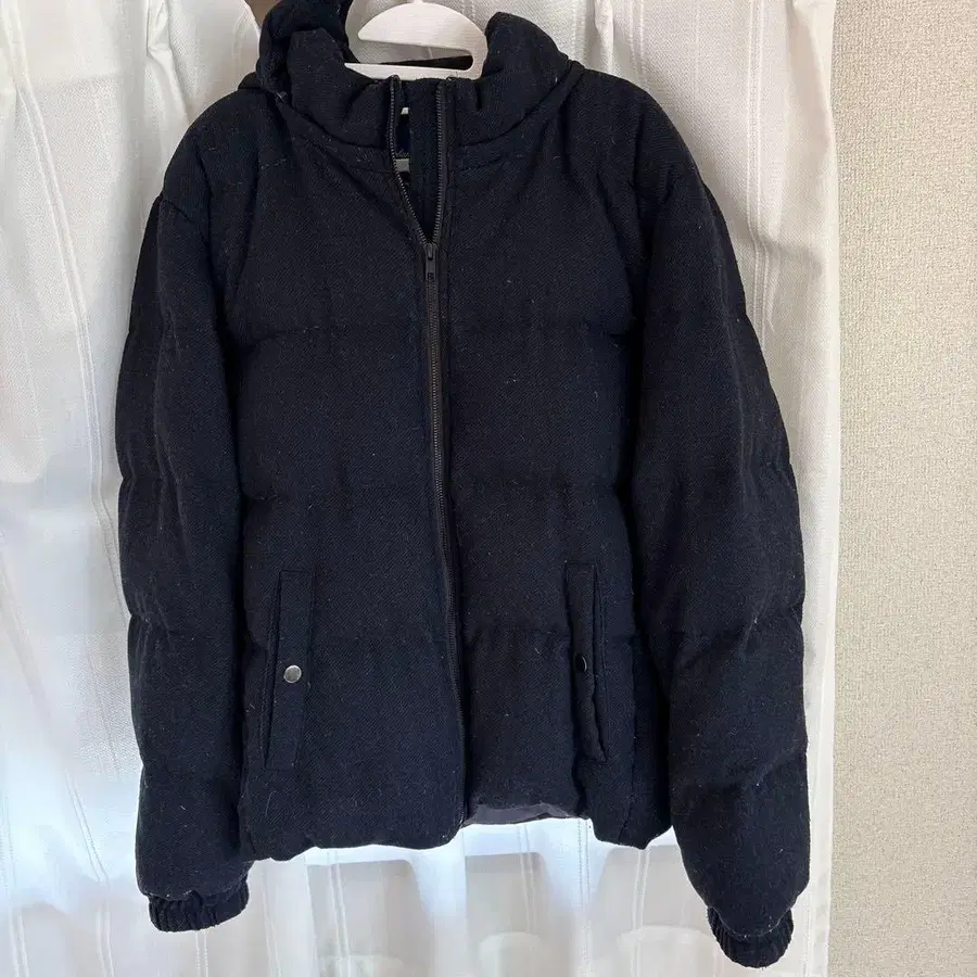 블랙 다운 자켓 사이즈 40 후드 부착
