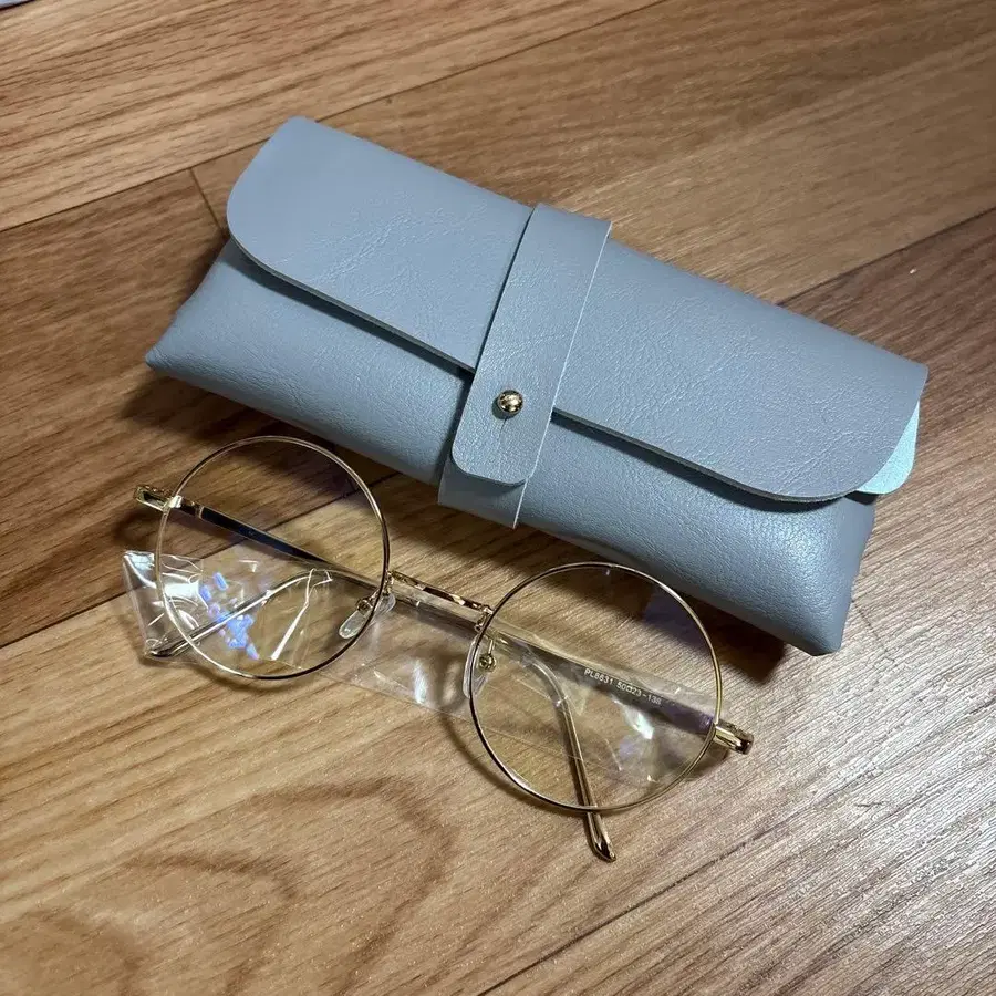 골드 메탈 프레임 라운드 안경과 케이스