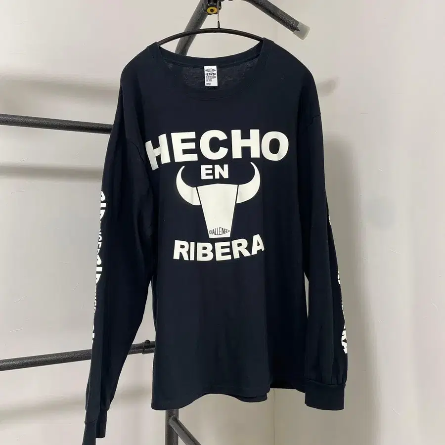 HECHO EN RIBERA 프린트가 특징인 챌린저 challenger 롱 슬리브 T셔츠. 스테이크 하우스 리베라와의 콜라보 롱T입니다. - 디자인: HECHO EN RIBERA 프린트 - 브랜드: CHALLENGER - 사이즈: L - 색상: 블랙 중고품임을 이해하시고 구매를 부탁드립니다. 방문해 주셔서 감사합니다. #나가세 토모야 #콜라보 #롱T #리베라