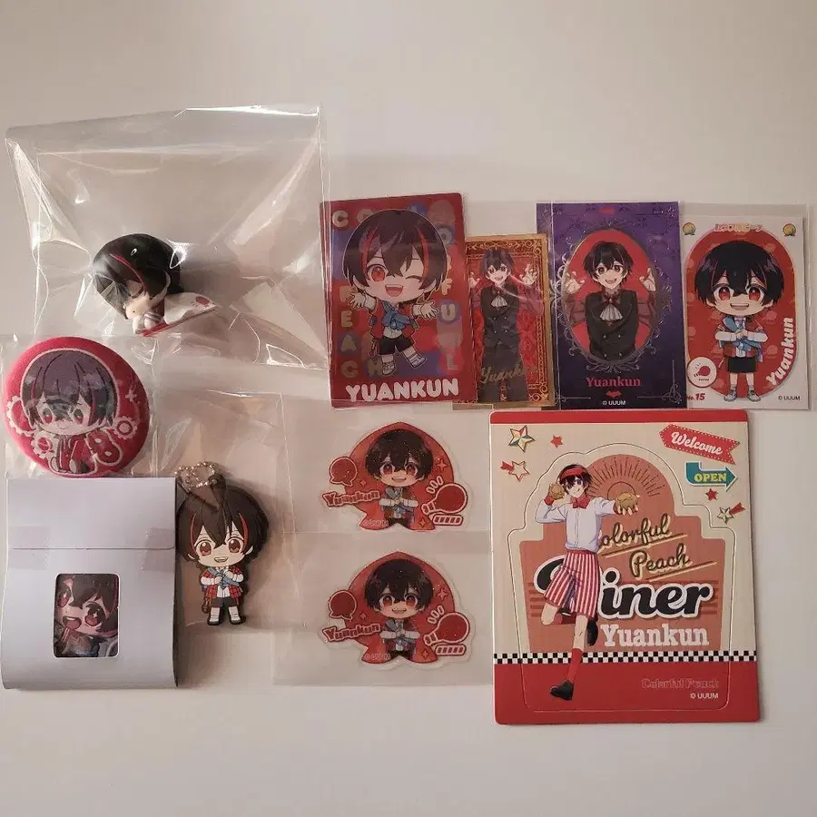 컬러풀 피치 다이너의 유안군 세트 - 캐릭터명: 유안군 - 아이템 타입: 배지, 캔뱃지 - 세트 내용: 배지, 스티커, 카드, 피규어 - 디자인 테마: 컬러풀 피치 다이너 - 제조사: UUUM 굿즈 정리 때문에 판매합니다. 상품을 꺼내 바로 슬리브로 교체했습니다. 신경 쓰이시는 분은 삼가해 주세요. 낱개 판매 가능. 방문해 주셔서 감사합니다.