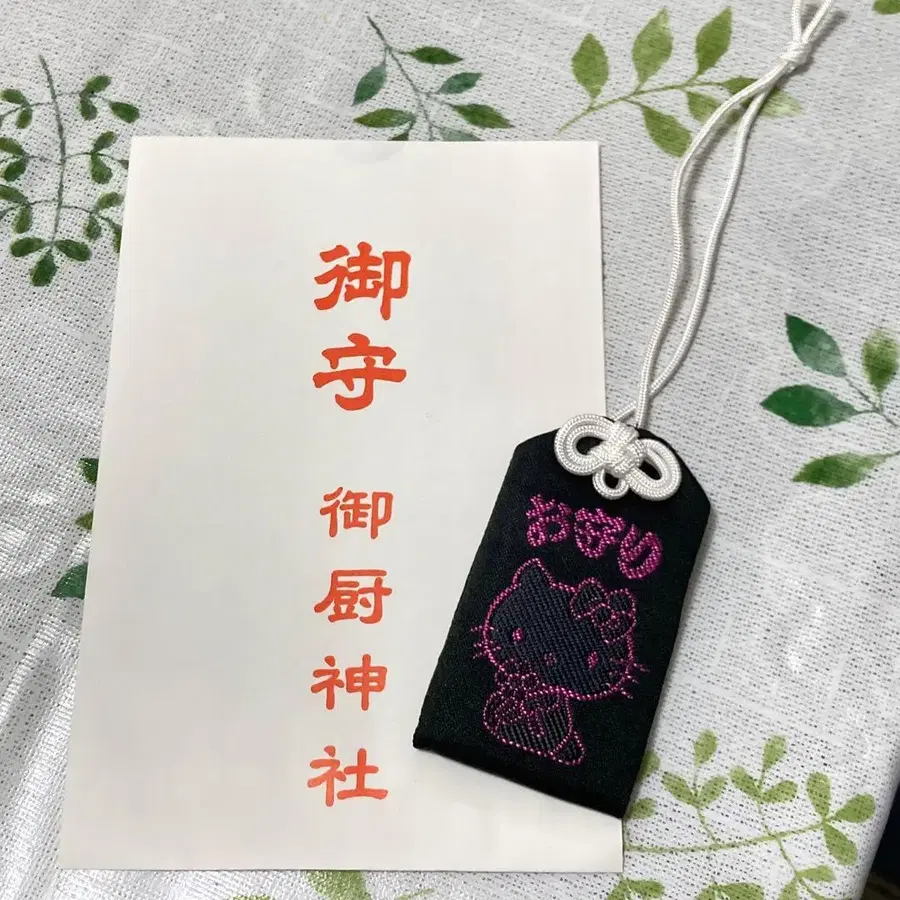 산리오 캐릭터 헬로키티 부적 블랙 컬러에 핑크 자수 2026년 1월 2일 구매 미쿠리 신사의 봉투는 접힐 가능성이 있어 포함되지 않습니다.