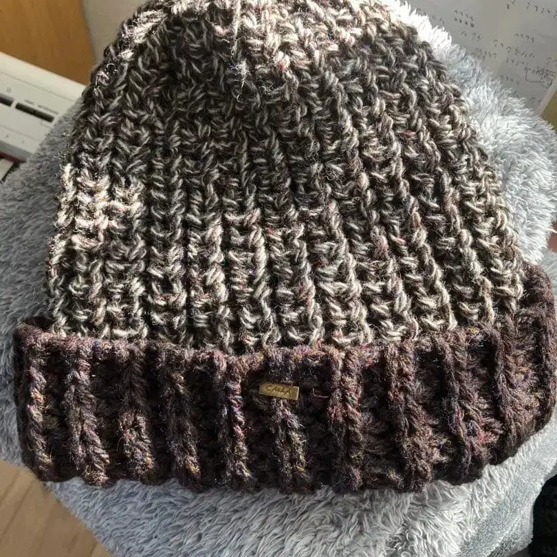 피플트리 업사이클 니트 모자 브라운 x 네이비 계열