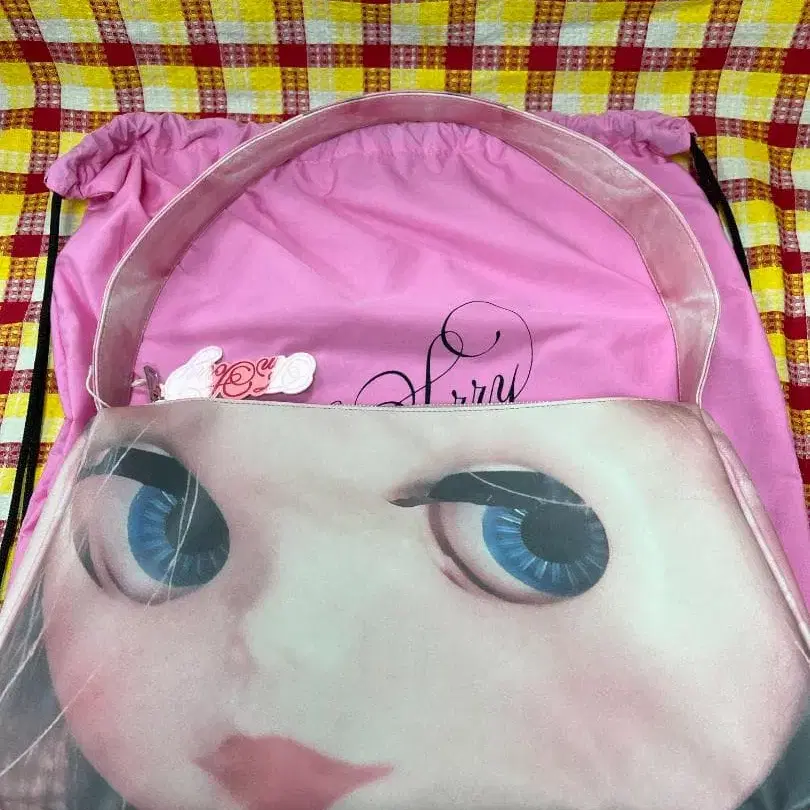 - 디자인: 인형 얼굴 프린트 핑크 토트백
