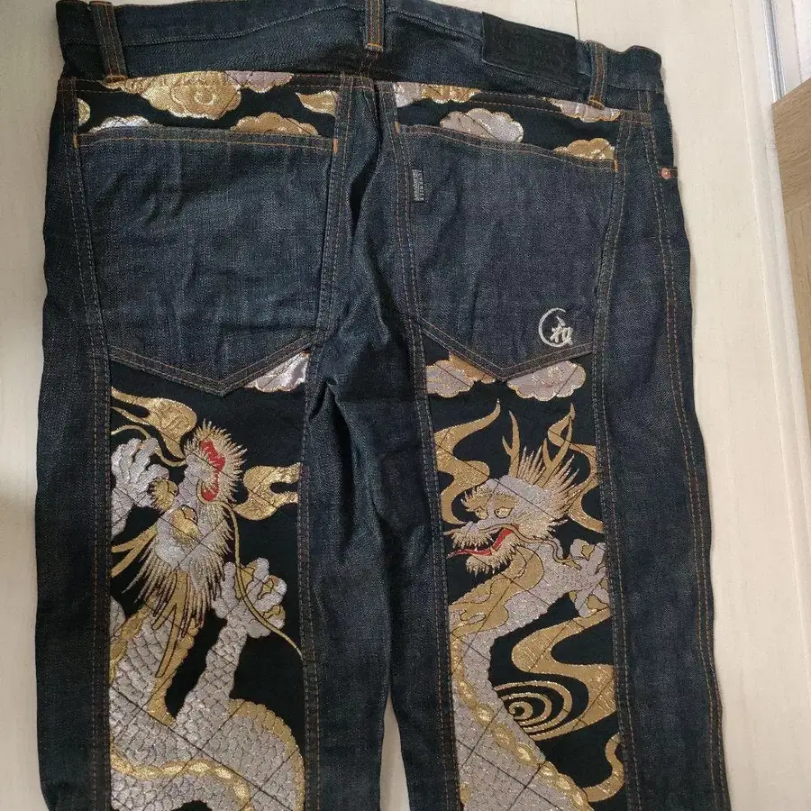 10년 정도 전에 구매한 제품입니다. 몇 번밖에 착용하지 않아 상태는 나쁘지 않다고 생각합니다. 관심 있으신 분은 가격 협의 가능합니다. 드래곤과 구름 자수가 들어간 다크 데님 스트레이트 데님. - 디자인: 드래곤과 구름 자수 - 색상: 다크 데님 - 특징: 자수 디자인의 스트레이트 데님 방문해 주셔서 감사합니다.