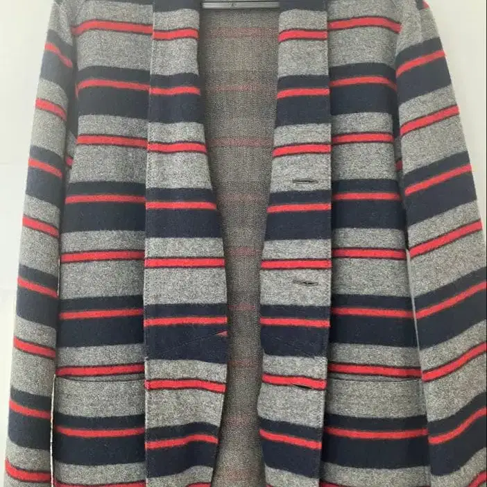 그레이, 네이비, 레드 스트라이프 디자인의 남성용 테일러드 자켓, L 사이즈.
