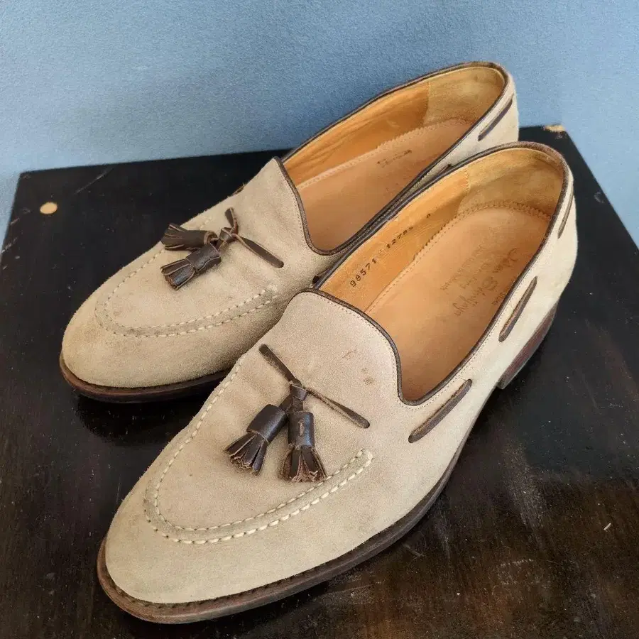 베이지 색상의 스웨이드 소재로, 태슬이 달린 로퍼입니다. 사이즈는 8이지만 27.5 정도입니다. 스웨이드 소재이므로 얼룩 등도 보입니다. - 색상: 베이지 - 소재: 스웨이드 - 디자인: 태슬 로퍼 - 밑창 소재: 가죽 방문해 주셔서 감사합니다. 트리커스 크로켓앤존스 알든 빔즈 유나이티드 애로우즈