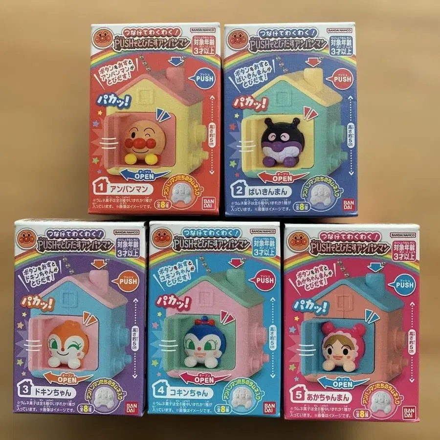 이어 나가자! 두근두근! PUSH로 튀어나오는 호빵맨 전 5종 컴프 세트