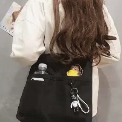 캔버스 소재의 블랙 숄더백, 외부 포켓 부착으로 편리합니다. - 색상: 블랙 - 스타일: 숄더백 - 액세서리: 키링 부착 - 소재: 캔버스 - 포켓: 외부 포켓 있음 방문해 주셔서 감사합니다.