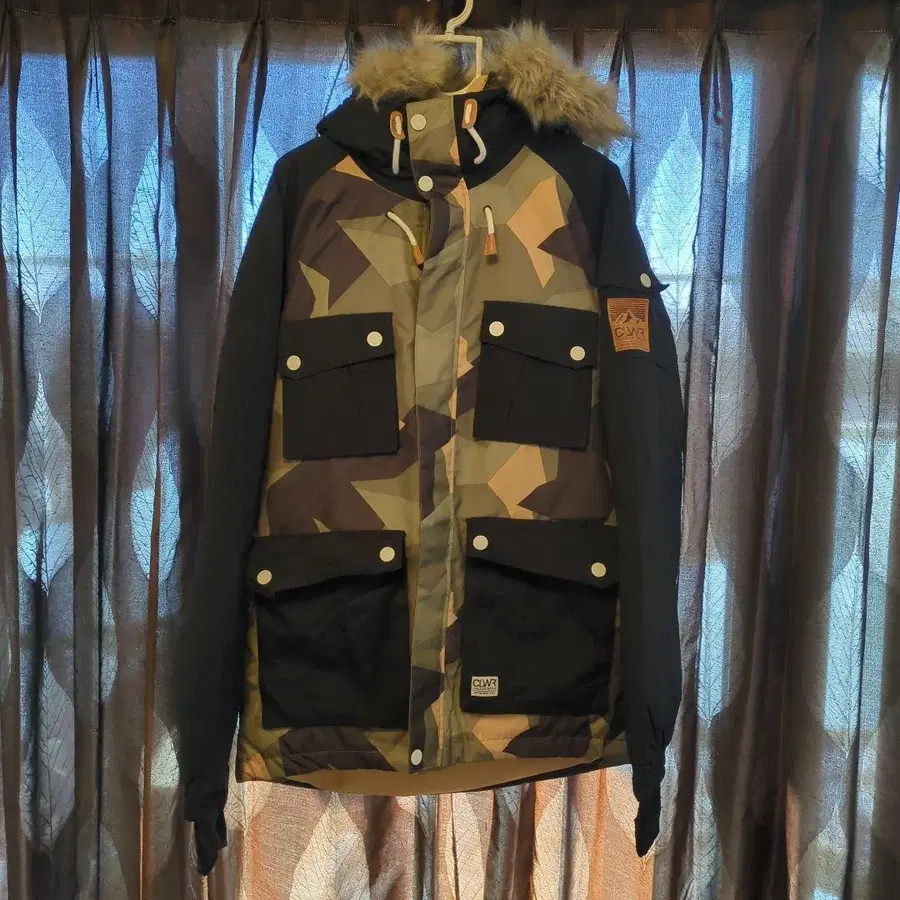 CLWR 의류 스노우보드웨어 브랜드의 다운 자켓 평소에도 의류로도 사용 가능 사이즈 M 컬러 카모플라쥬 x 블랙