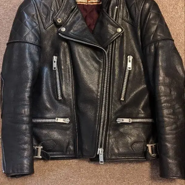 블랙 가죽 자켓, 퀼팅 안감 부착