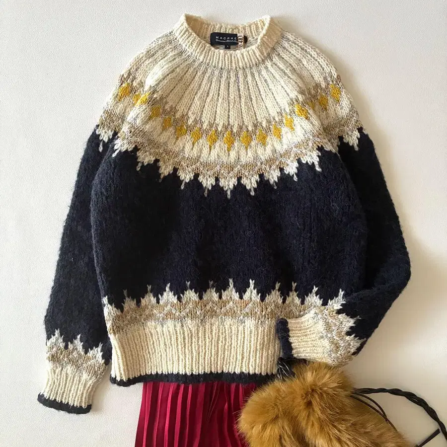자동 번역되었어요. 원문보기포근한 따뜻함이 느껴지는 노르딕 무늬 핸드 니트입니다.