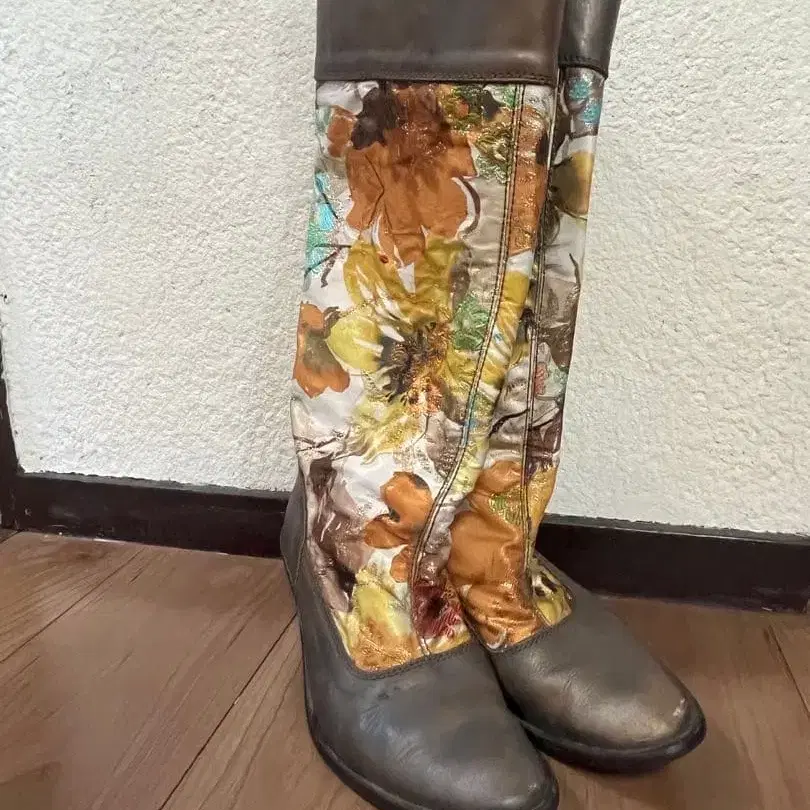 꽃무늬 롱 부츠 브라운