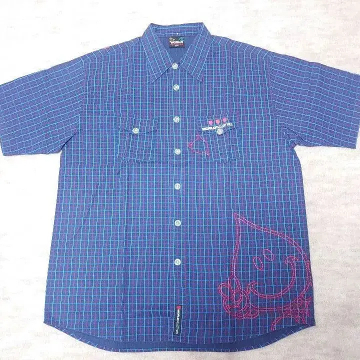 [ y2k ] BOYCOTT 보이콧 체크 셔츠 스컬 자수 반팔