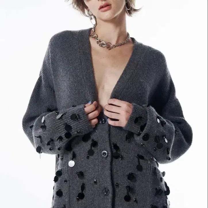 JOSEMOON BIJOU OVER KNIT CARDIGAN grey