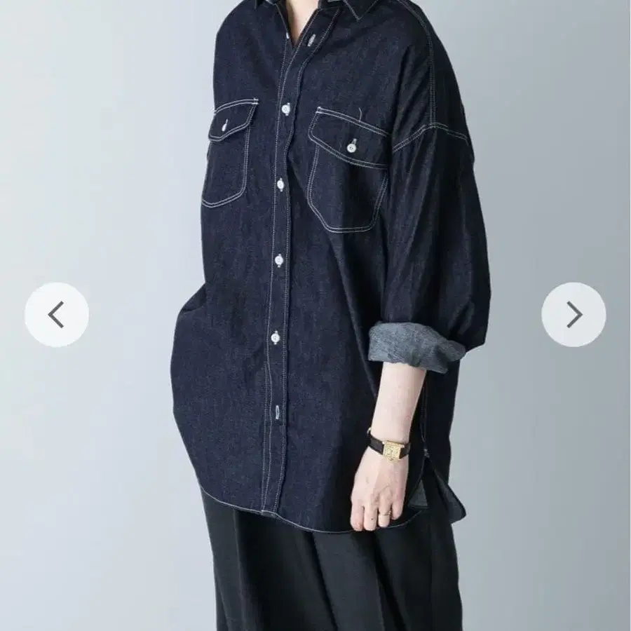카구레 데님 워크 셔츠 시착만 한 상품입니다. 사이즈가 커서 깨끗할 때 판매합니다. 작게 접어서 발송됩니다.