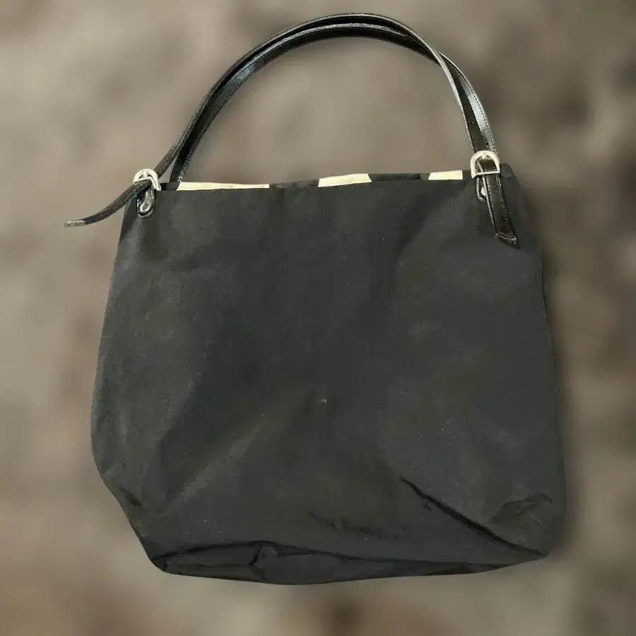 • [russet] 블랙 x 네이비 패턴 나일론 토트백