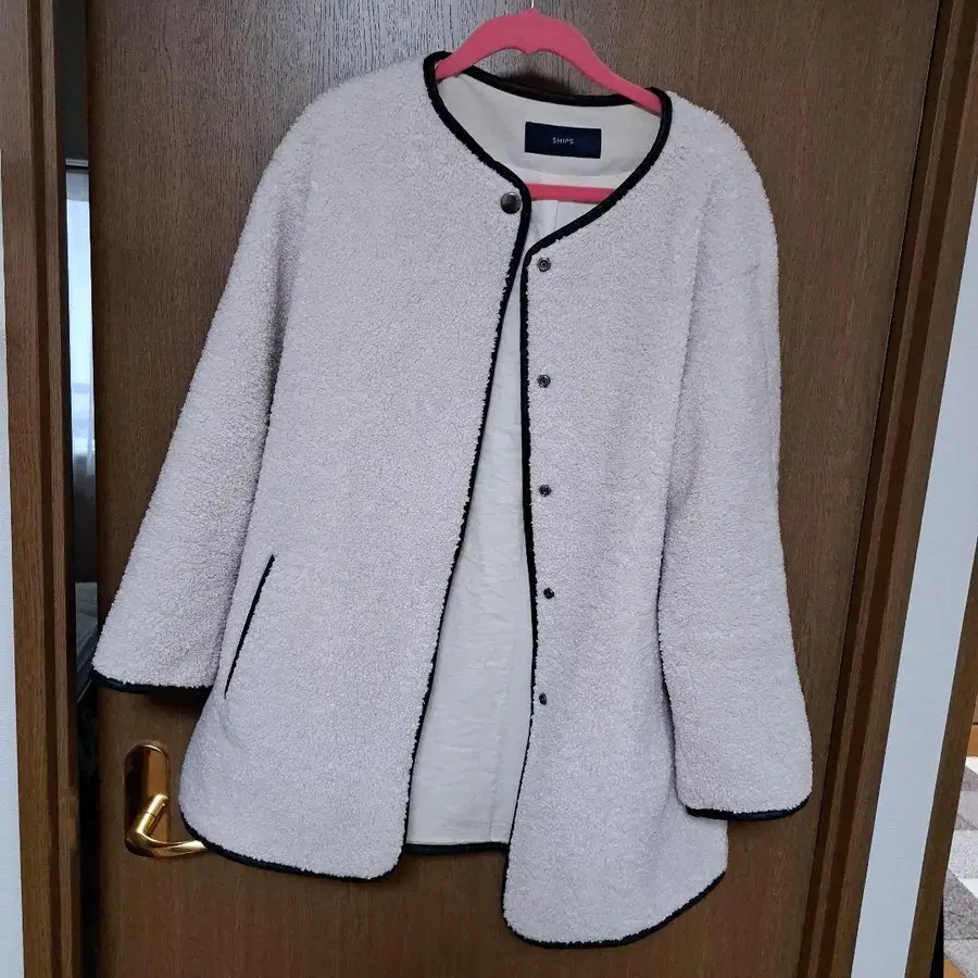 아이보리 보아 자켓, 캐주얼 스타일에 최적. - 브랜드: SHIPS - 색상: 아이보리 - 디자인: 보아 자켓 - 버튼 수: 스냅 버튼 이곳에서 깨끗한 상태로 양도받았으나, 착용하려던 사람이 다른 것을 구매해버렸습니다. 기장 - 74~75cm (오차 있음)