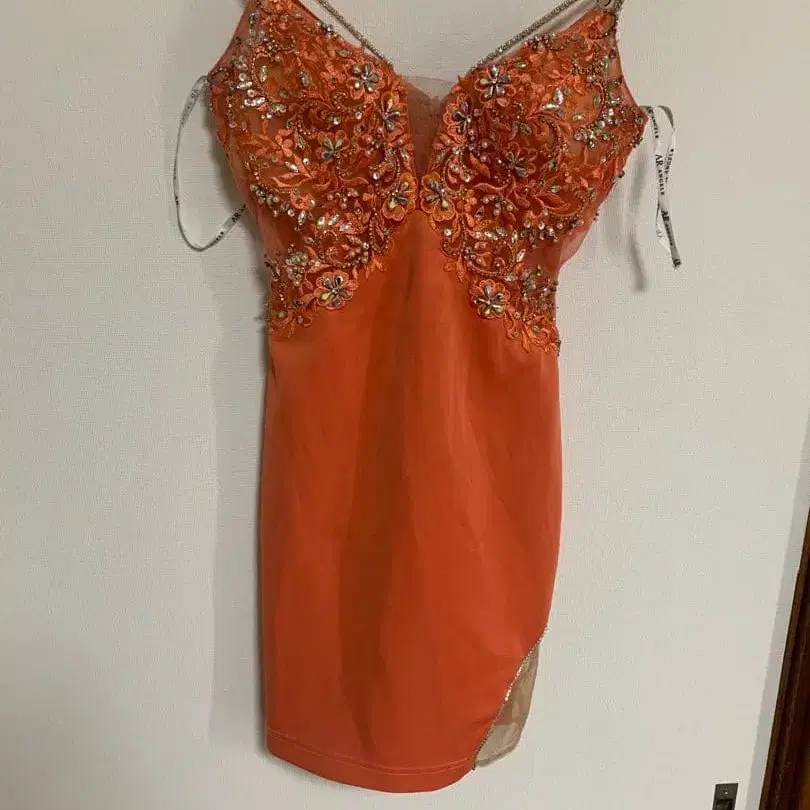 비즈 자수가 놓인 오렌지 색상의 슬립 드레스. - 색상: 오렌지 - 장식: 비즈 자수 - 스타일: 슬립 드레스 - 백 스타일: V넥 - 어깨끈: 조정 가능 방문해 주셔서 감사합니다. 011