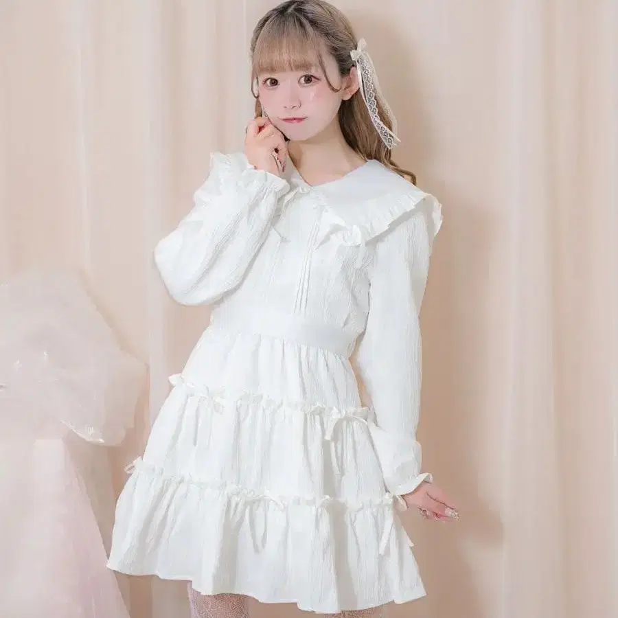 Honey Cinnamon 리본 자카드 빅 칼라 원피스