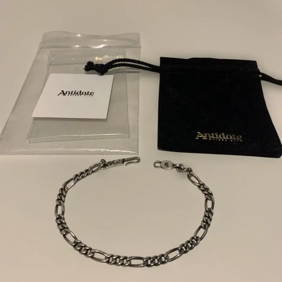 Antidote Buyers Club의 피가로 체인 팔찌입니다. 오리지널 후크를 사용했으며, 플레이트 부분에는 브랜드 로고 각인이 들어간 체인 팔찌입니다. 후크 부분에 오너먼트 조각이 들어가 럭셔리함을 더했습니다. 소재 / Silver950 사이즈 / Medium(180mm) 폭:4mm 사용 빈도가 적어 깨끗한 상태입니다. 중고품이므로 이해해 주시기 바랍니다. 잘 부탁드립니다.