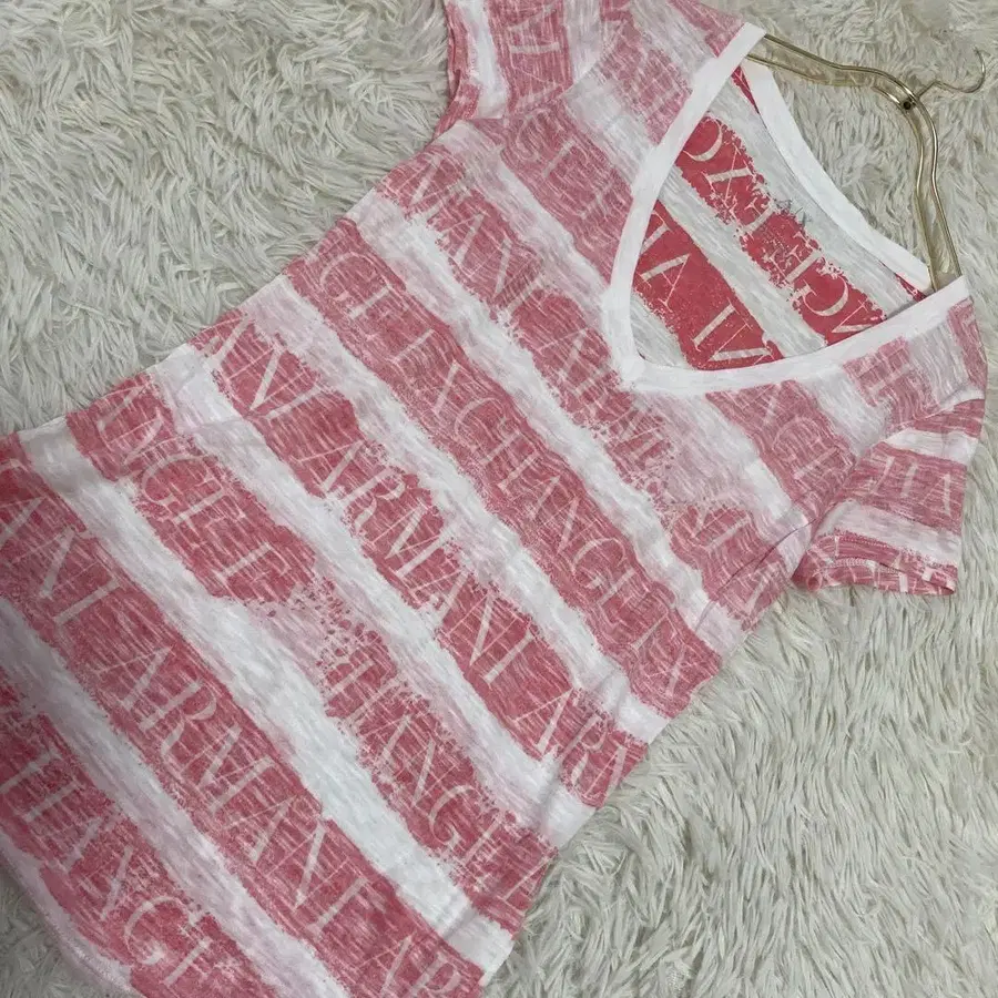 ARMANI EXCHANGE 티셔츠 화이트 S 로고 보더 V넥