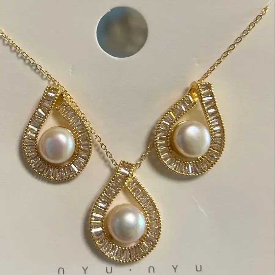 담수 진주 NYU NYU 티어드롭 목걸이와 귀찌 세트