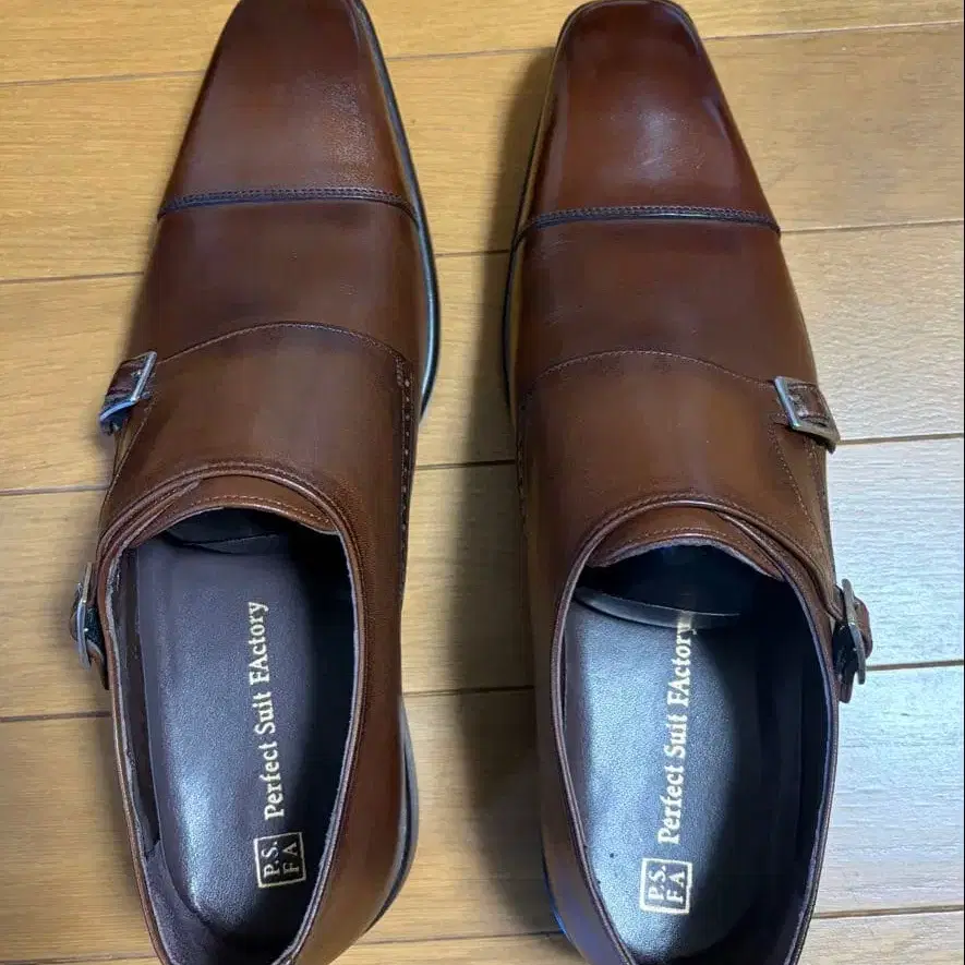 방문해 주셔서 감사합니다. 브라운 컬러의 가죽 더블 몽크 스트랩 슈즈입니다. 엘레강트한 디자인으로 비즈니스 장면에 최적입니다. - 브랜드: Perfect Suit Factory - 색상: 브라운 신을 기회가 없어 판매하게 되었습니다. 사이즈는 26.5cm입니다. 네고 불가, 할인 협상은 삼가해 주시기 바랍니다. 잘 부탁드립니다. 사이즈 - 26.5cm