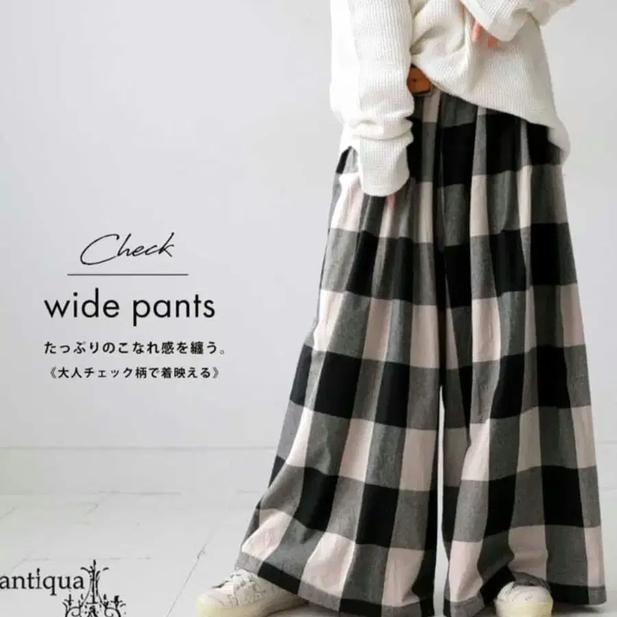 Antiqua 체크 무늬 와이드 팬츠 Regular 사이즈