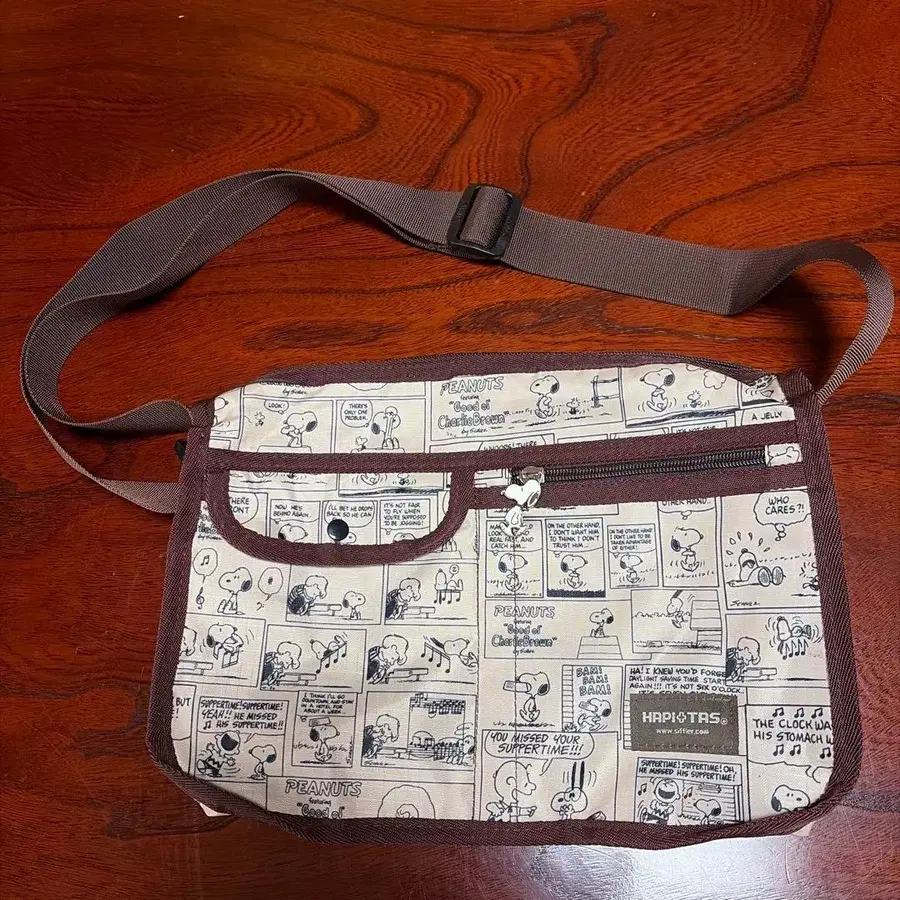 PEANUTS 코믹 디자인이 특징인 숄더백. - 디자인: PEANUTS 코믹 프린트 - 색상: 베이지/브라운 - 내부: 도트 무늬 안감 - 스트랩: 조정 가능한 숄더 스트랩 - 포켓: 외부에 지퍼 포켓 세로 20cm x 가로 31.5cm x 바닥 14cm 방문해 주셔서 감사합니다.