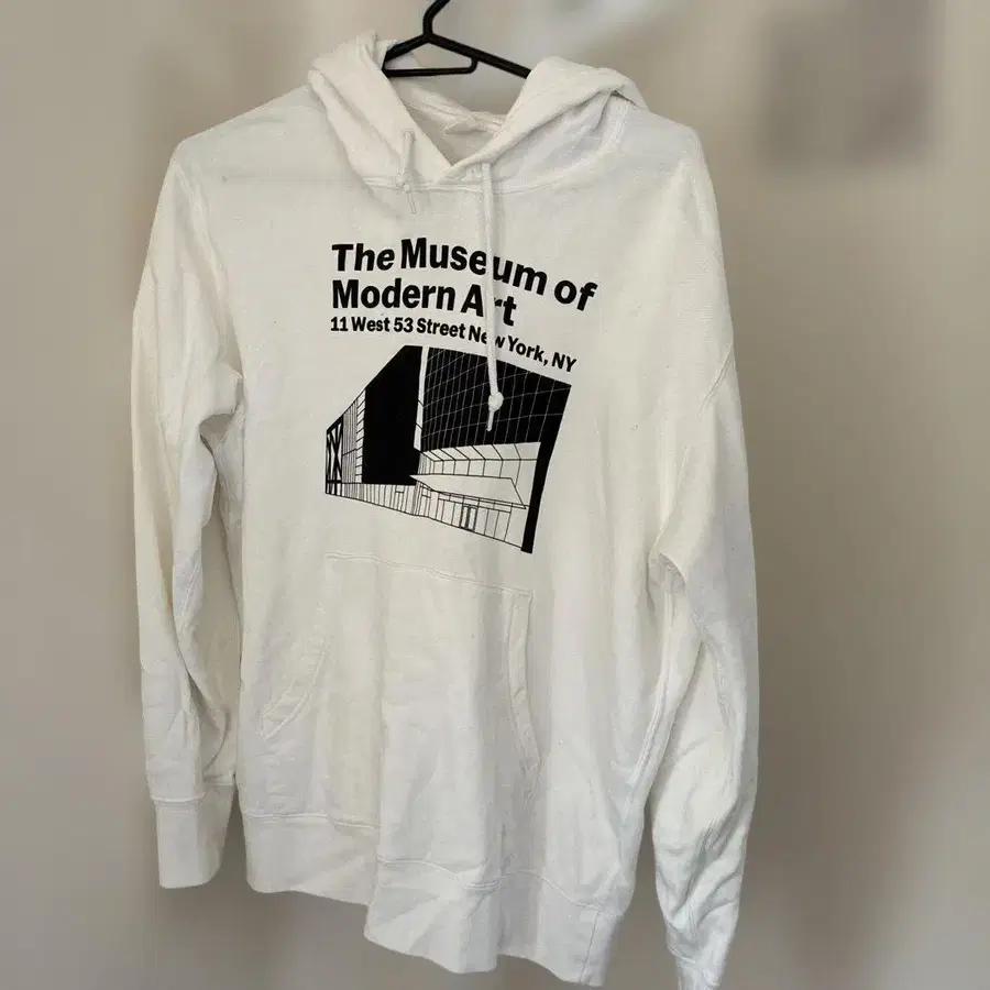 - 디자인: The Museum of Modern Art 로고와 건물이 프린트된 화이트 후드티